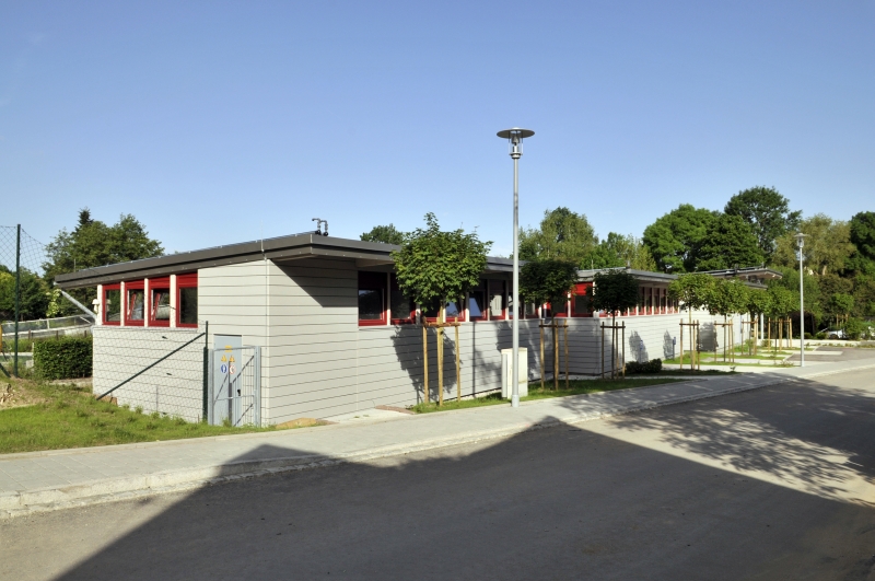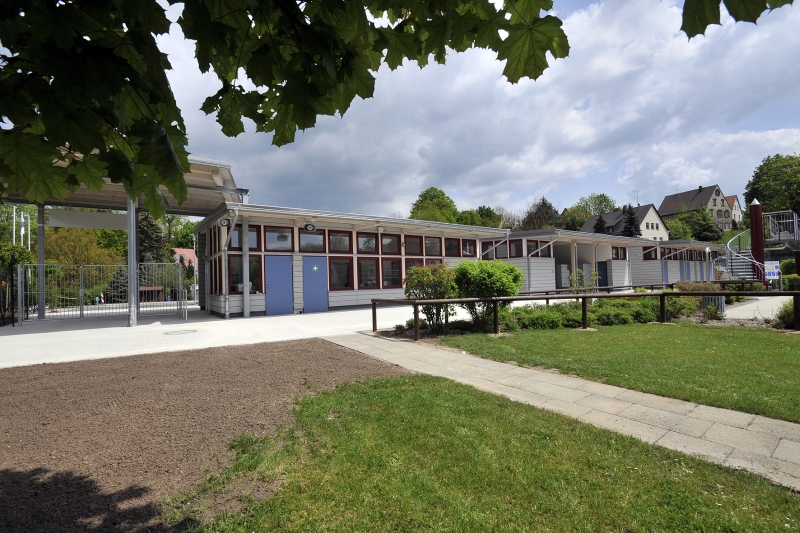 - ein Kinderspielplatz mit Rutsche, Schaukel, Sandkasten, Wippe, Kombi-Klettergerüst sowie Tischtennisplatte und Ballspielbereich