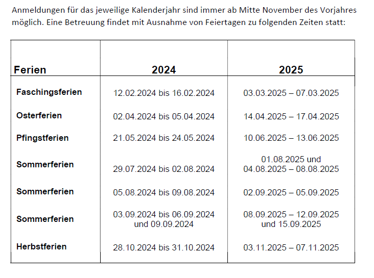 Ferienbetreuung für Schülerinnen und Schüler der Grundschule Heroldsberg