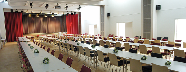 Zuhörerplätze bis ca. 40 Personen bzw. Tischreihen können nach Bedarf angeordnet werden.