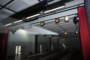 1 Funk-Head-Set über Mischpult im daneben liegenden Regieraum steuerbar