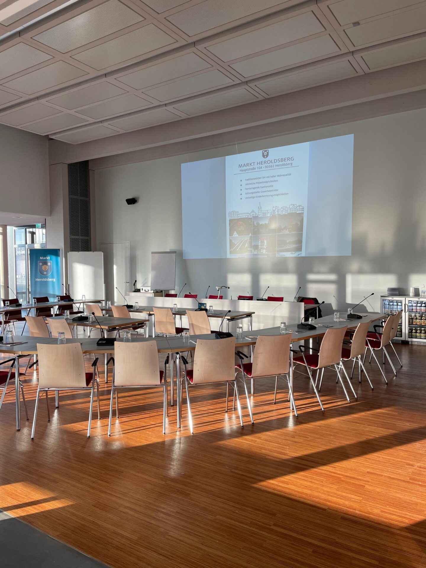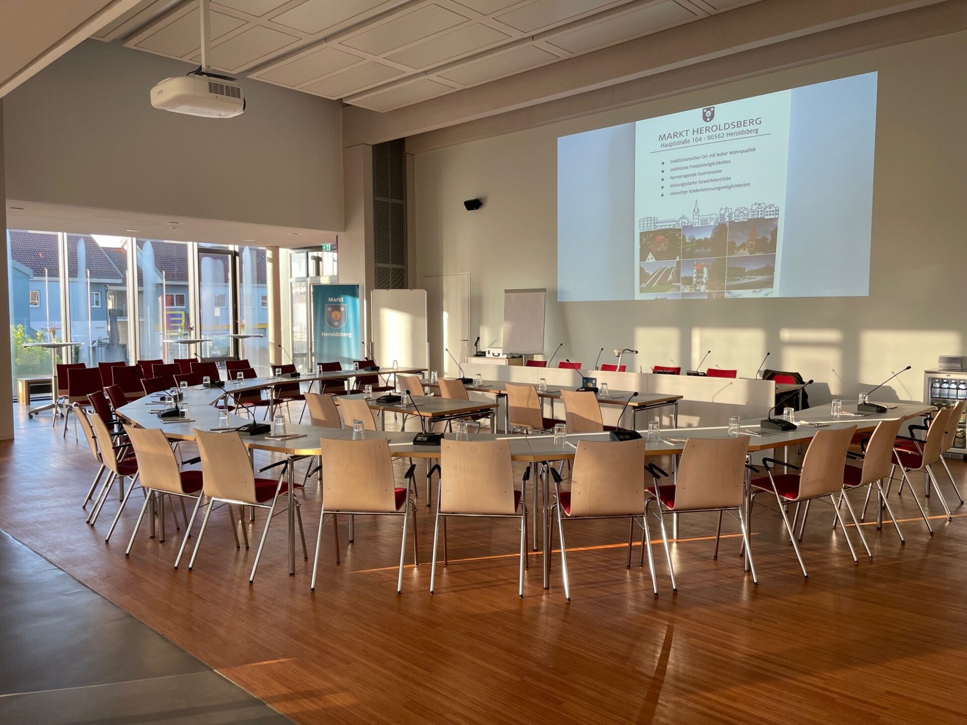 Mit seinen räumlichen Möglichkeiten und professioneller Beleuchtungs- und Präsentationstechnik verfügt der Bürgersaal über alle Voraussetzungen, um dem vielseitigen gesellschaftlichen Leben in Heroldsberg Raum zu schaffen.