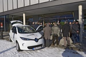 Im Anschluss, wurde der am Vortag gelieferte Renault Zoe kurz vorgestellt. Dieser PKW soll ab Januar 2017 im Carsharing System, der Bevölkerung zur Verfügung gestellt werden. Am starken Interesse der Besucher war klar erkennbar, dass das Zukunftsthema E-Mobilität an Bedeutung gewonnen hat. In zahlreichen Einzel- und Gruppendiskussionen ging es um Themen, wie Reichweite, Verfügbarkeit von Ladestationen, Mehrpreis gegenüber konventionellen PKW und die Betriebskosten der Fahrzeuge.