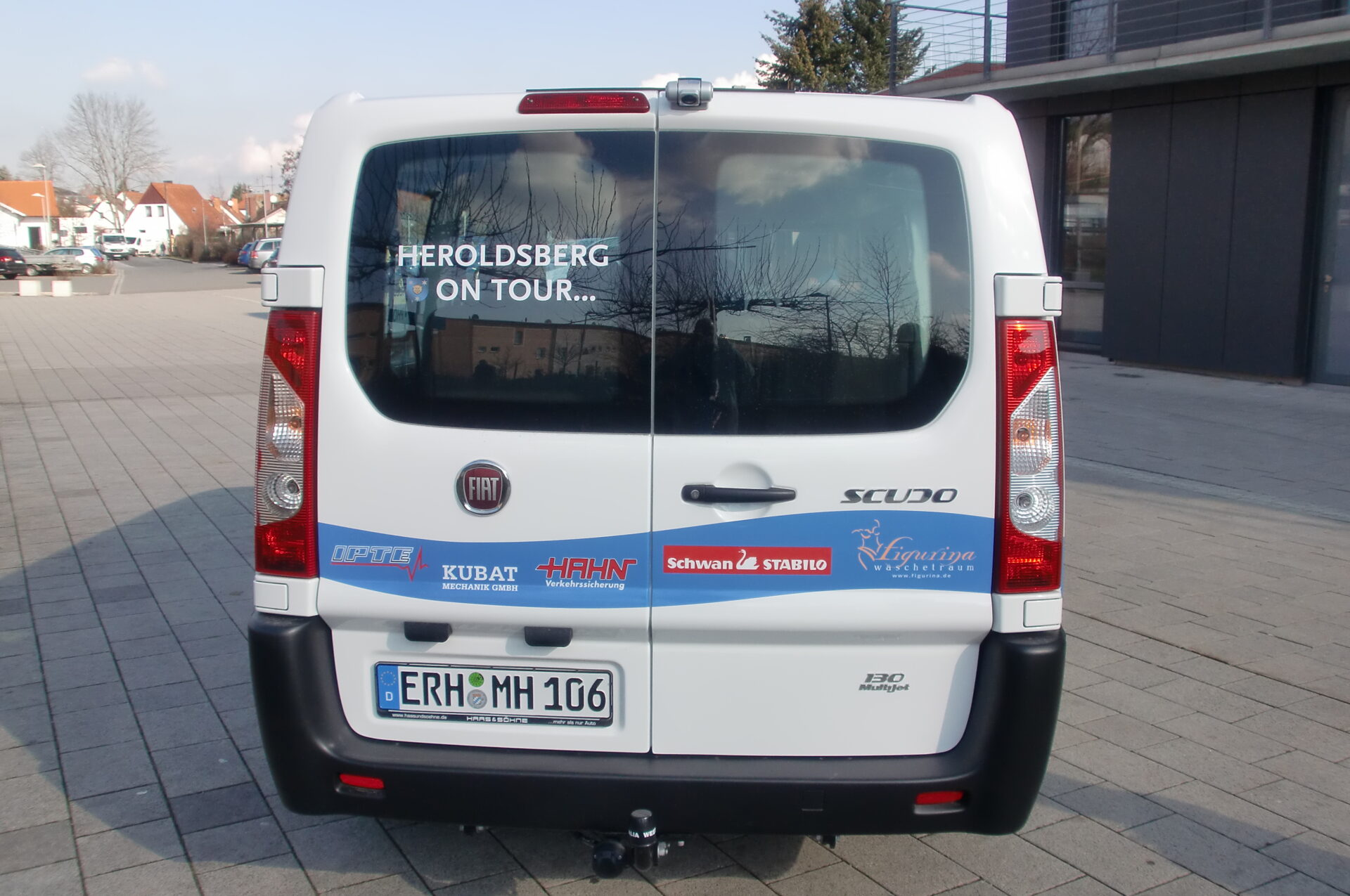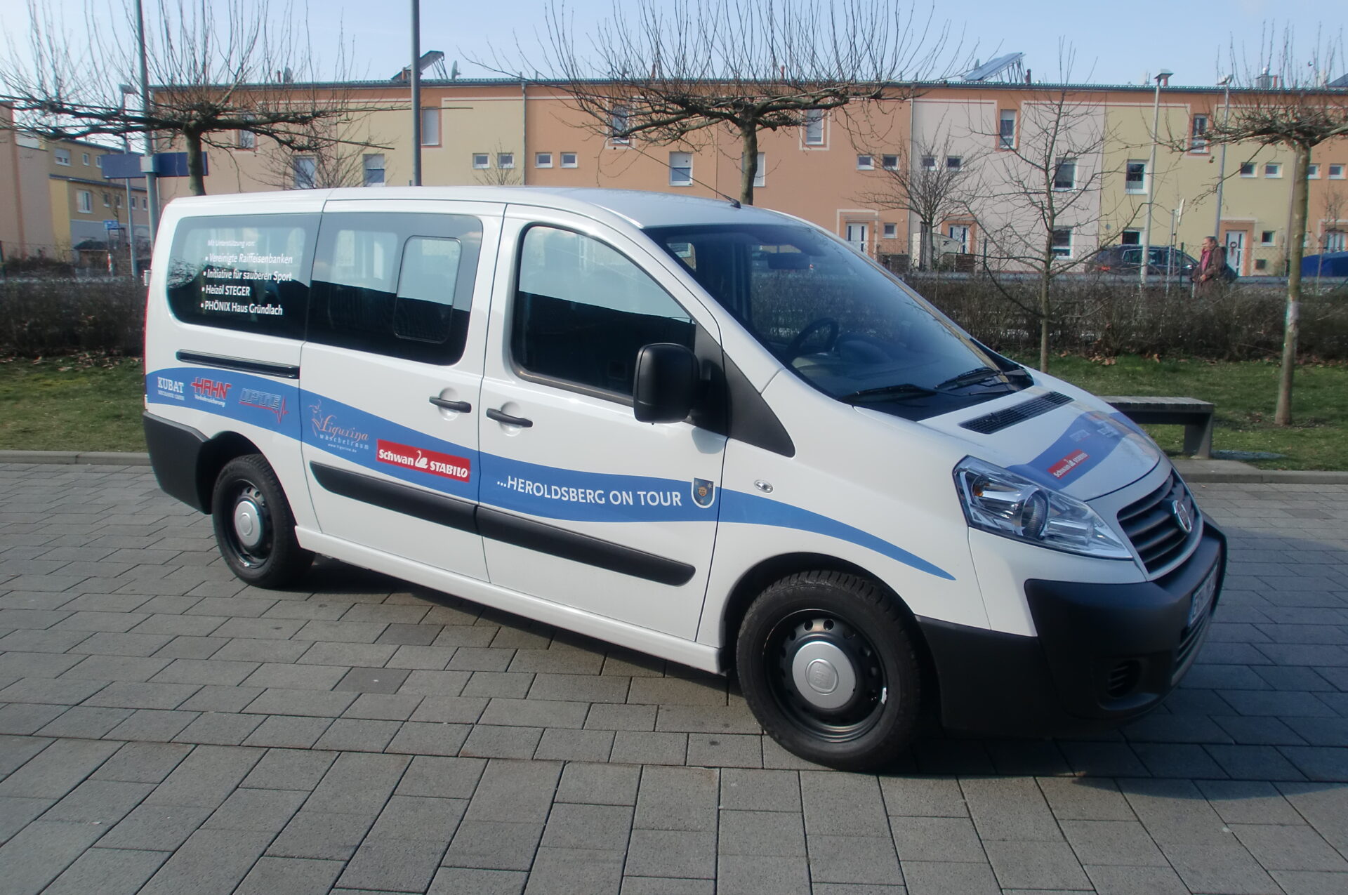 Das vielfältige Gemeindeleben in Heroldsberg kann 2016 noch mehr „Fahrt aufnehmen“: Der Markt Heroldsberg stellt seinen Einrichtungen sowie örtlichen Vereinen und Gruppen einen Kleinbus zur Verfügung, um sie bei ihren Aktivitäten zu unterstützen. Finanziert wird das Projekt von insgesamt neun Unternehmen, die mit ihrem Engagement Gemeinsinn und Verantwortung zeigen. Der untenstehende Bericht mit Bild zeigt die offizielle Fahrzeugübergabe mit Vertretern der beteiligten Firmen vor dem Heroldsberger Rathaus. Der geräumige Fiat Scudo bietet (inklusive Fahrer) neun komfortable Sitze für gemeinsame Fahrten und Unternehmungen. Je nach Bedarf können damit beispielsweise Jugendmannschaften zum Turnier, Jugendgruppen ins Zeltlager, Feuerwehrleute zu Weiterbildungen oder Seniorenrunden zu geselligen Ausflügen fahren. Das Fahrzeug wird nicht vermietet, sondern gegen einen geringfügigen Verwaltungsbeitrag zur Verfügung gestellt. Die Vergabe und Organisation liegt beim Markt Heroldsberg als Fahrzeughalter.